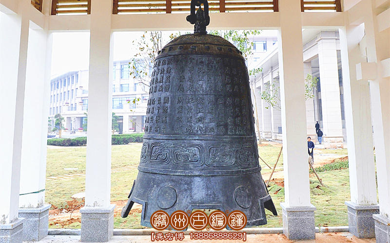 警示鐘,通高2米,下部口徑1.4米,上部鈕高0.3米,總重約1600公斤。襄陽(yáng)市檢察院定制,警世鐘是本次青銅器訂單當(dāng)中,規(guī)格最大,文字最多,要求最高,用銅最重的器物,他的制作工藝如果運(yùn)用我們的失蠟精密鑄造法,反而達(dá)不到精良效果,因而我們聘請(qǐng)了多位專家指導(dǎo),運(yùn)用最先進(jìn)復(fù)合型精密鑄造工藝,其中使用陶瓷型技術(shù)制作鐘外模,運(yùn)用樹脂砂工藝做鐘內(nèi)心,因而得到了完好鐘體外形,保證了發(fā)音的渾然一體,精細(xì)的紋飾反映了獨(dú)特的地域歷史文化。