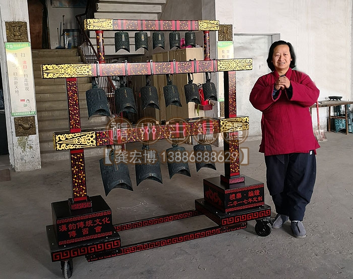 2017年12月,隨州市古編鐘文化發(fā)展有限公司為漢服合肥客戶設計制作了15件3層編鐘,樣式美觀,移動方便,受到客戶好評。